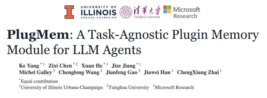 PlugMem 是一项面向大语言模型(LLM)Agent 的新型长期记忆设计,由清华、UIUC 和微软研究院联合提出。它直击当前Agent记忆的痛点:在聊天中好用,换到网页浏览或多跳问答就失效。