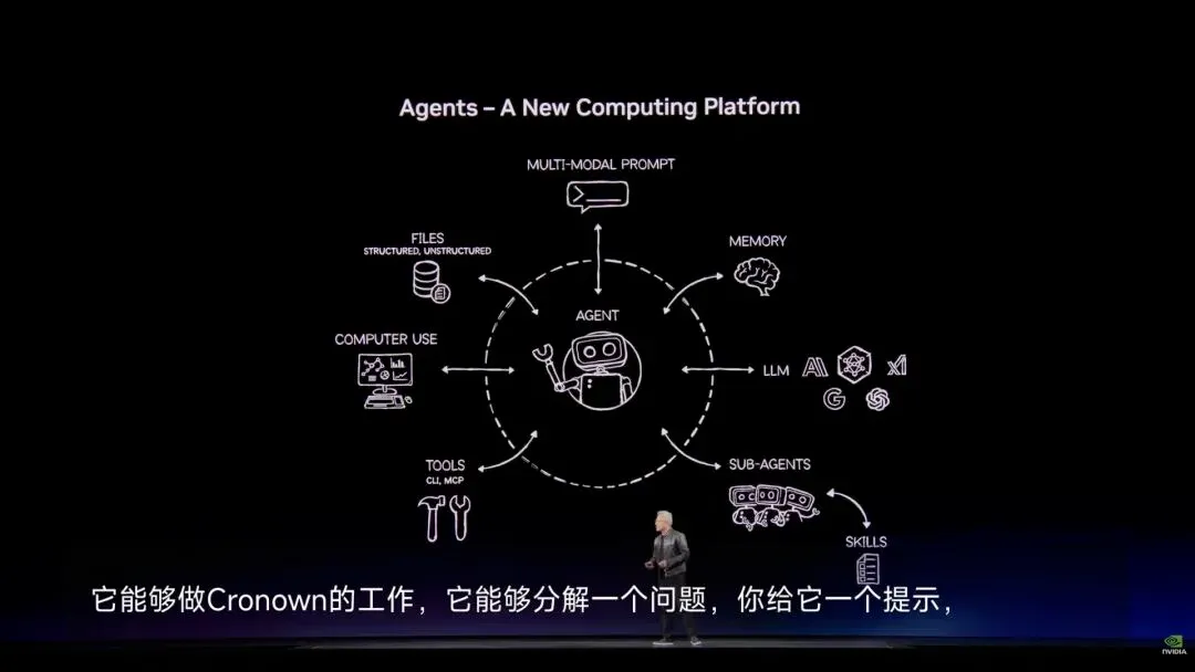 GTC 2026上,英伟达发布两大革命性产品:Vera Rubin超算平台和NemoClaw操作系统。Vera Rubin由7颗芯片集成,单机架达15 exaFLOPS FP4推理算力,是前代Blackwell的14倍;首次引入Groq LPU后,高价值推理性能狂飙35倍,Token生成率两年提升350倍。