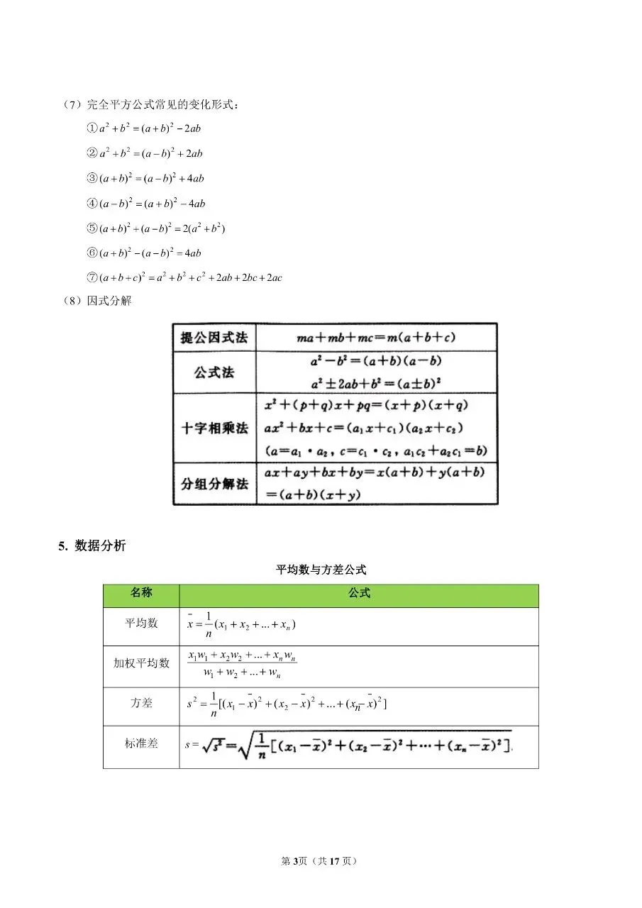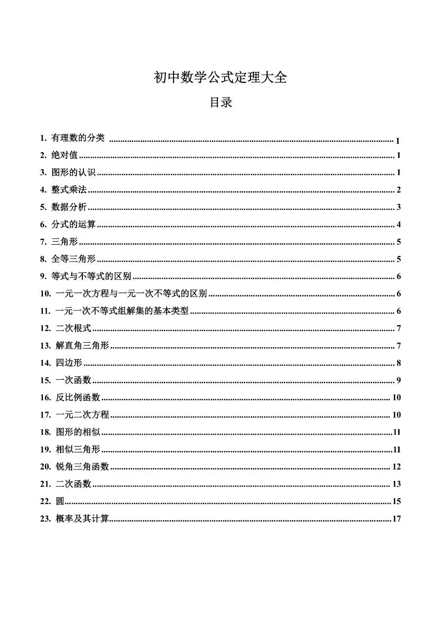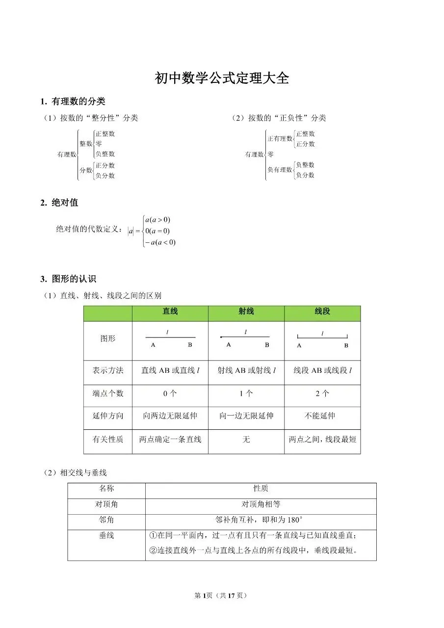 初中数学|公式定理大全(高清下载打印)初中资料每日更新,具体看完整PDF版本