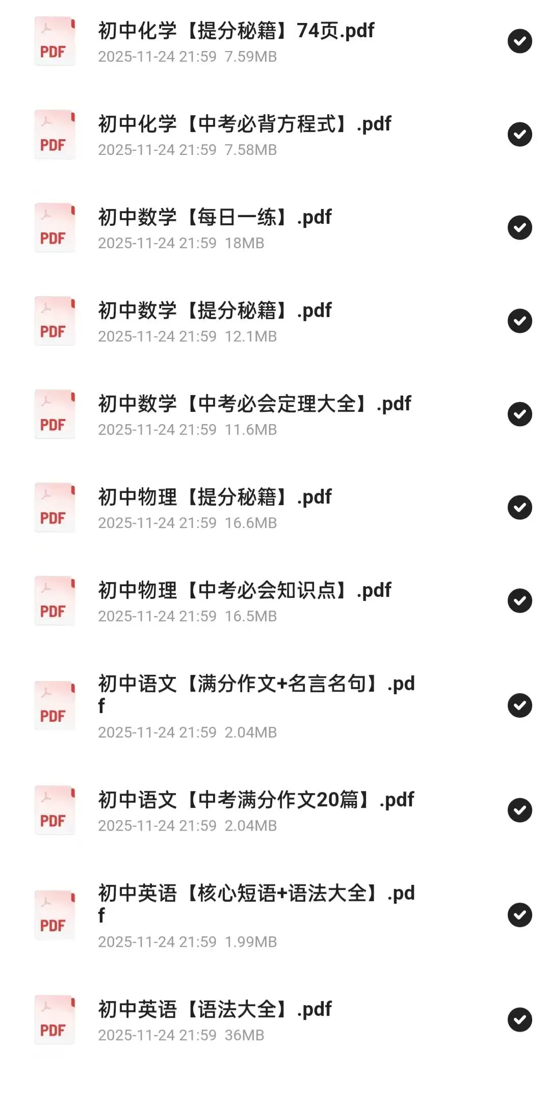 小学初中各科《中考复习提分秘籍》PDF电子版 可下载打印