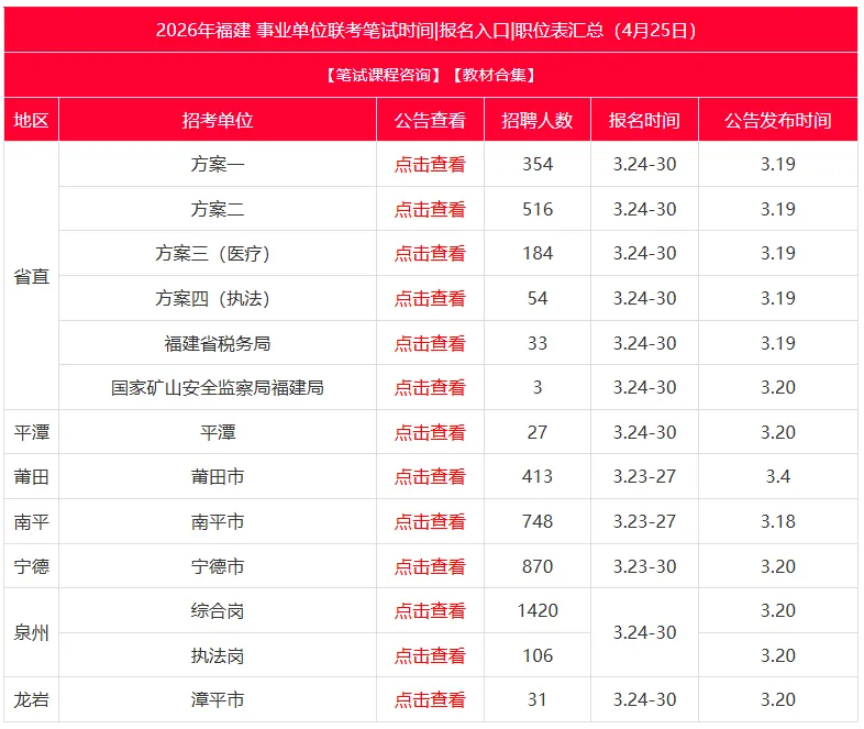 福建事业单位425联考,今日新增