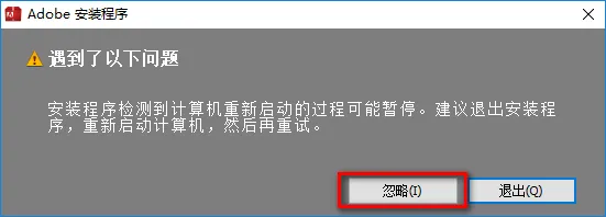 3.先断网,找到并选中Set-up,鼠标右键点击“以管理员身份运行” ![]() 温馨提示:不断网也可以安装,但是需要登录Adobe账号。有账号登录,没有账号注册一个即可。 4.如果出现,点击“忽略”