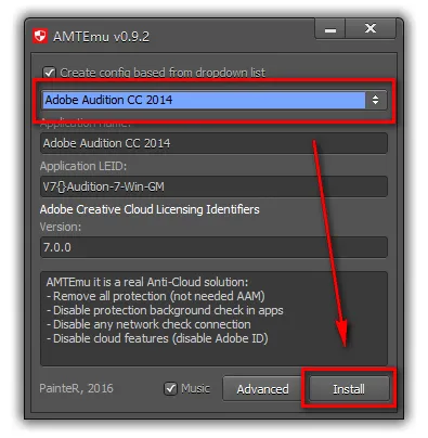 13.选中amtemu.v0.9.2,鼠标右键点击“以管理员身份运行” ![]() 温馨提示:若打开没有注册机,说明被电脑杀毒软件隔离了,关闭杀毒软件重新解压即可。 14.第一个选项卡选择Adobe Audition CC 2014,点击“Install” ![]() 15.在弹出的文件资源管理器中,找到软件安装目录下的amtlib文件,点击“打开”。默认路径为:C:\ProgramFiles\Adobe\Adobe Audition CC 2014 ![]() 16.在注册机里看到OK的字样,说明破解成功 ![]() 17.安装结束