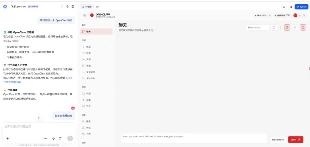 不得不说,飞书在小龙虾这个事情上面还是挺超前的。或许他最早机器人对接比企业微信方便是偶然,但是后续退出官方配置组建,到现在一键部署,确实不一样。笔者体验完就删除了,着实不知道怎么计费的,比较慌,大家不会弄的可以去体验。