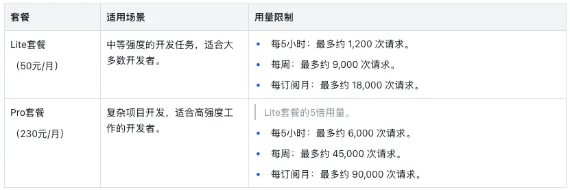 个人用户/轻度使用:选择Lite套餐(50元/月)完全满足日常办公、代码辅助需求
