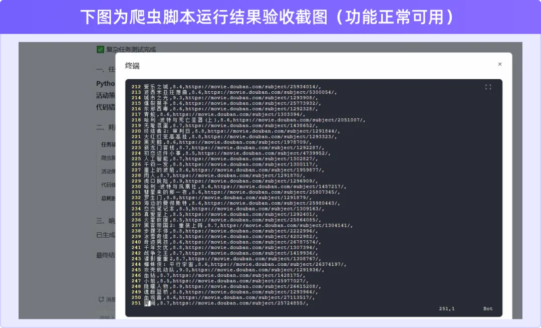 测试1: 写一个Python爬虫脚本,总耗时约 54.1秒