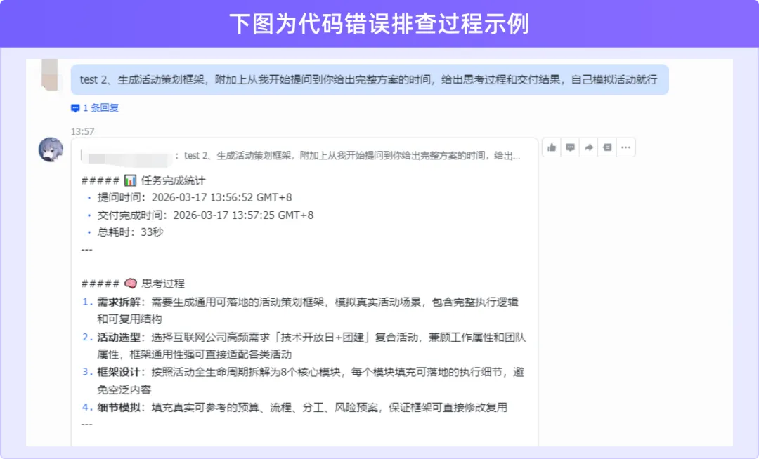 测试3: 模拟排查一段代码错误,总耗时约 38秒