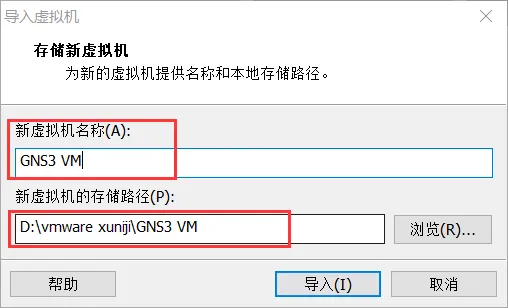 存储路径可自定义,虚拟机导入完成后,可暂不运行,后面启动GNS3软件时会自动运行。
