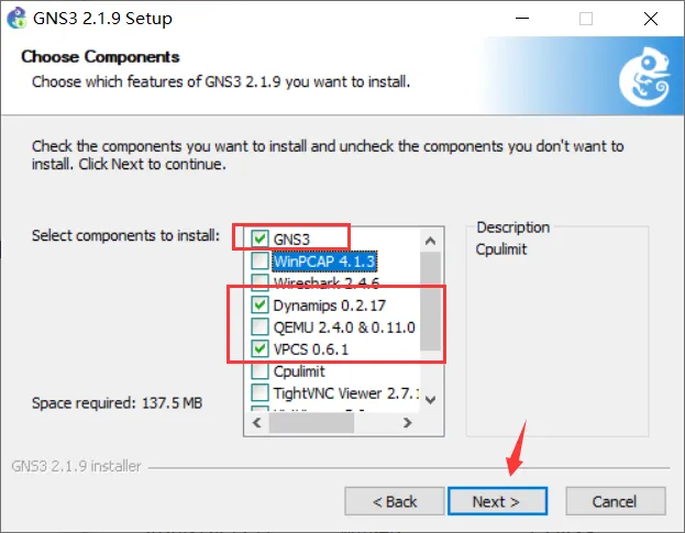 GNS3安装过程中各种些组件的详细说明