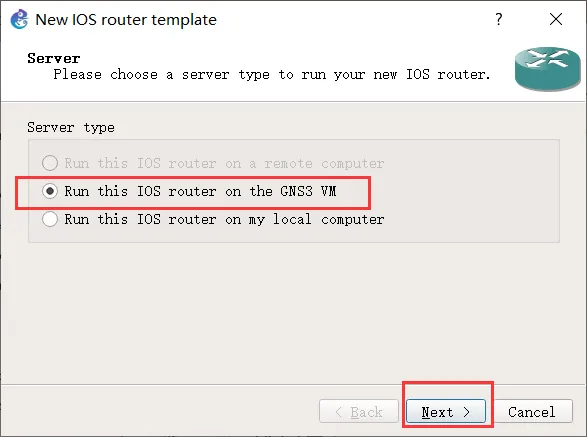 选择从 GNS 虚拟机中运行 IOS 映像: