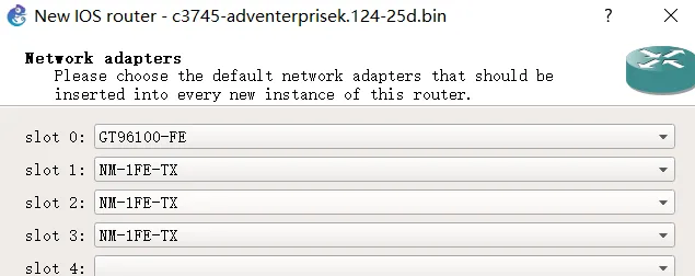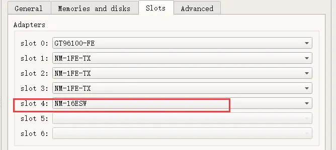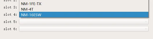 点击 Slots 标签,在空闲的 Slot 中增加 NM-16ESW 交换模块: