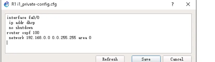 方法 2 : 右 键 点 击 路 由 器 , 选 菜 单 上 的 Edit Config , 然 后 选 择private-config,将配置内容复制到文本框中,点保存。