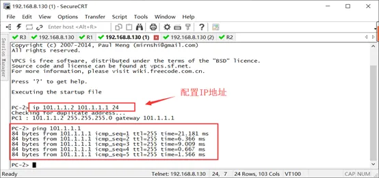 双击打开V-PC设备,只支持在命令行配置IP地址,具体如下图中操作
