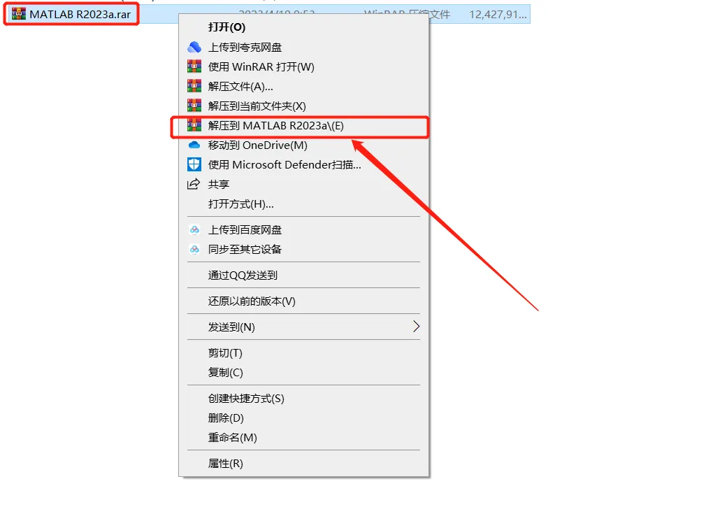 1.鼠标右击【MATLAB R2023a】压缩包选择【解压到MATLAB R2023a】文件夹。