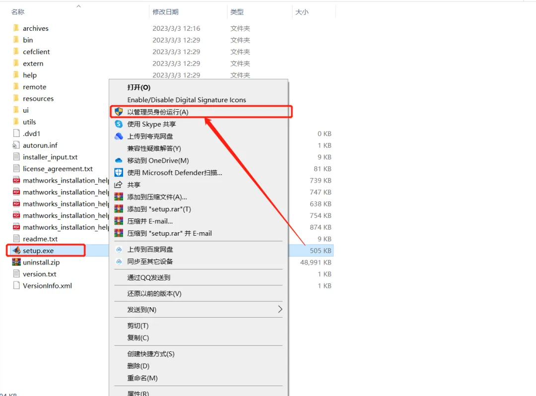 3.鼠标右【setup】选择【以管理员身份运行】。
