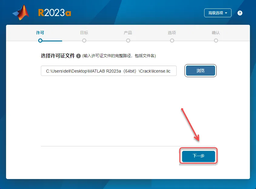 7.确定许可文件路径,点【浏览】。