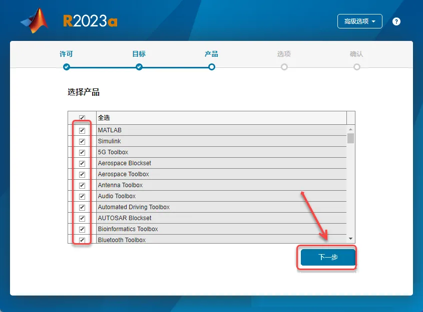 11.勾选需要安装的产品,点【下一步】。