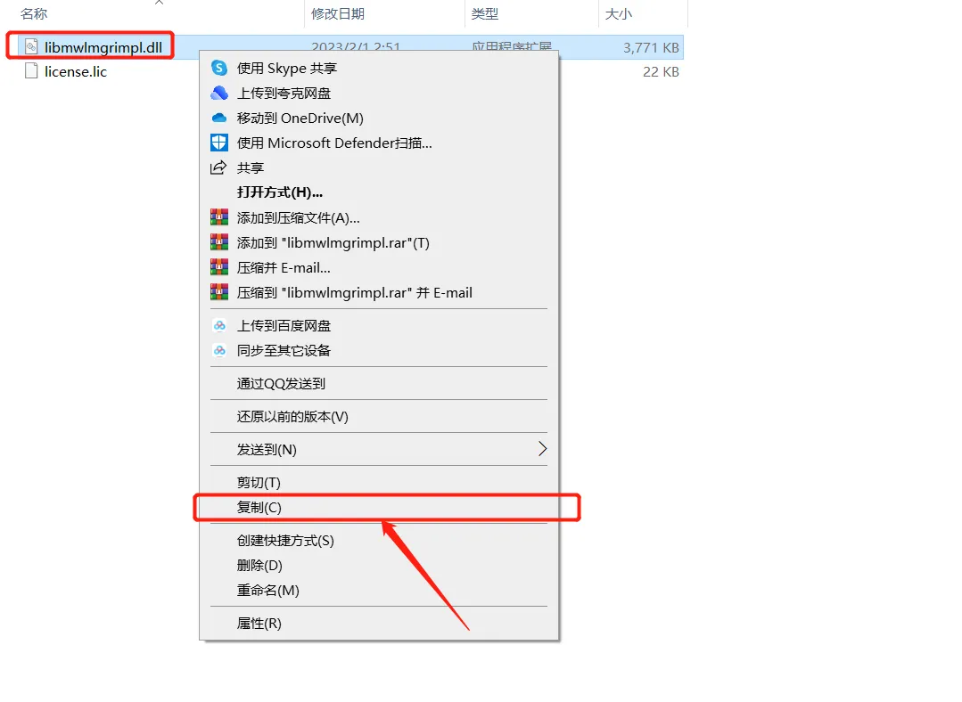 17.鼠标右击【libmwlmgrimpl.dll】选择【复制】。