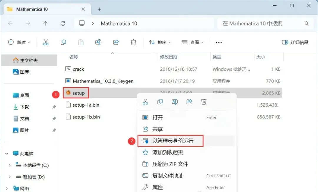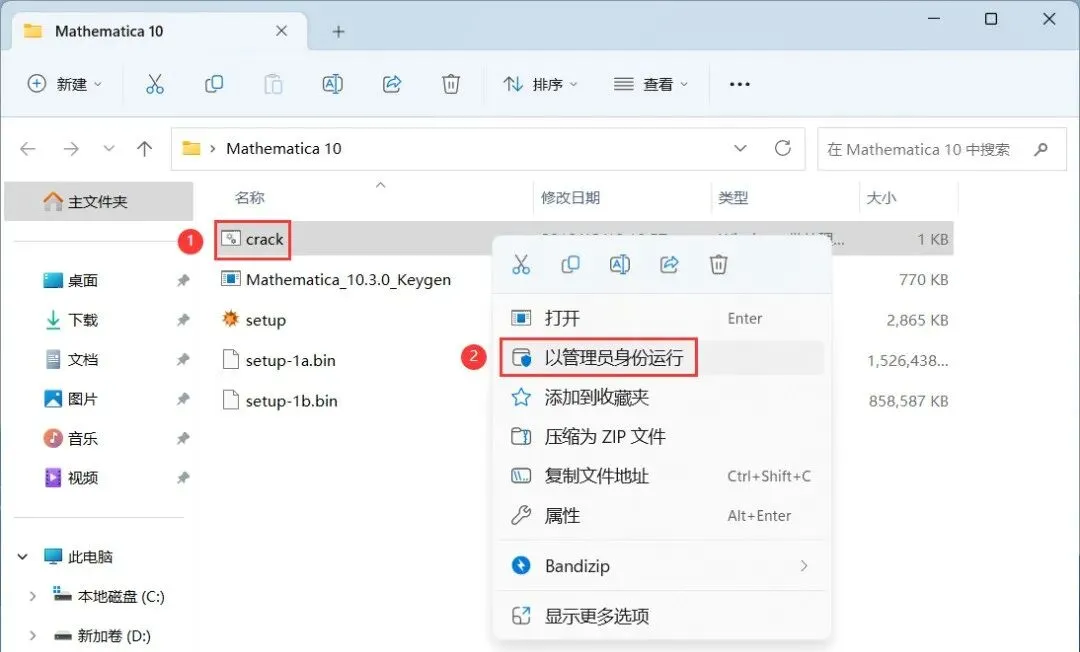 16、回到Mathematica 10文件夹,找到【crack】程序,右键选择【以管理员身份运行】它