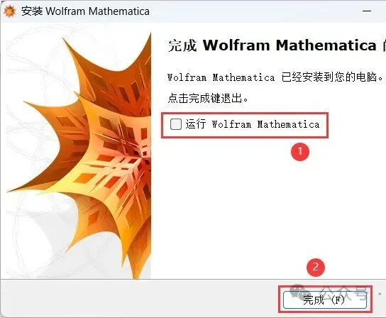 11、不勾选【运行 Wolfram Mathematica】,再点击【完成】