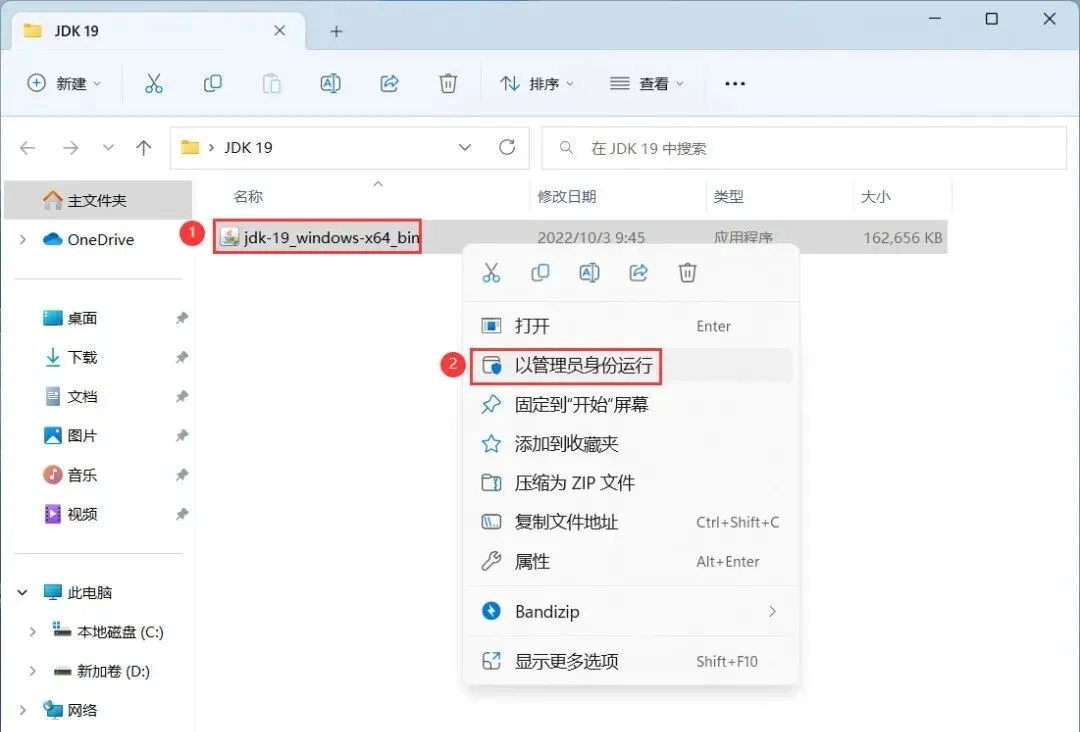 3、找到【jdk-19-x64】应用程序,右键选择【以管理员身份运行】它