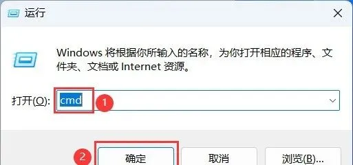 8、回到桌面,按下快捷键【WIN图标+R】,输入【cmd】,再点击【确定】