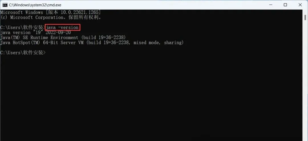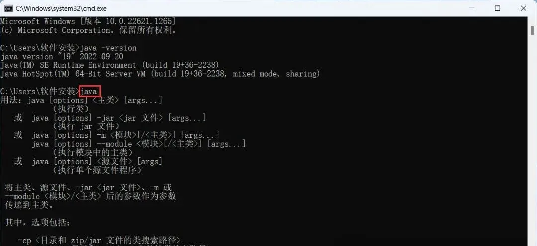 10、输入:java,按下键盘上的【Enter】回车键,得到下列反馈
