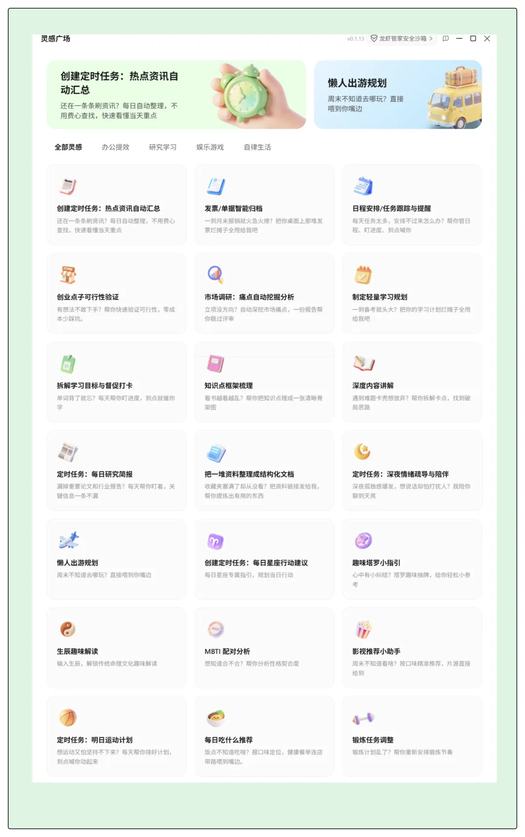 不知道该怎么向AI提问?QClaw里预设了很多“任务模板”,比如“分析市场痛点”、“整理知识框架”、“规划明日运动”。你选一个,稍微改改,就能直接用来指挥其他AI干活,沟通效率翻倍。
