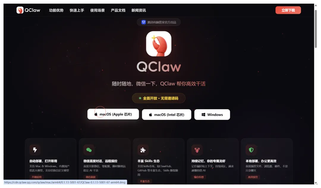 别急,这感觉就像学驾照,你不需要上来就去开F1方程式。现在,你车里就配了个360度全景影像——就是这个基于OpenClaw框架封装,腾讯家专门为微信生态打造的“低配版小龙虾”QClaw。