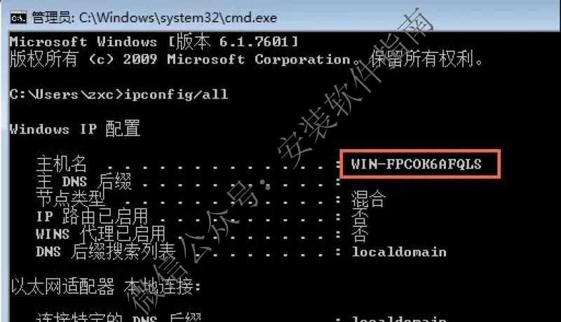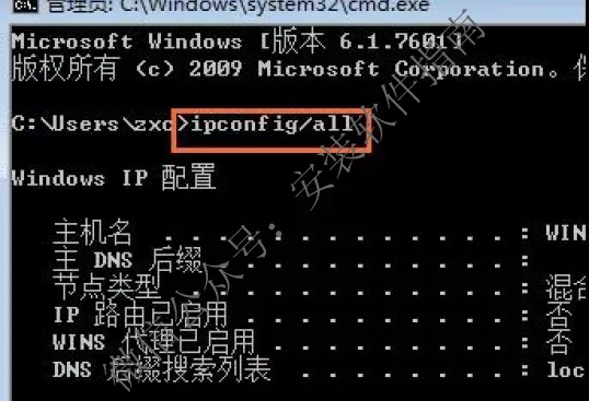 3、输入 ipconfig/all 按回车