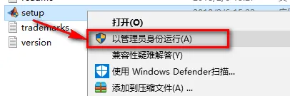 3.选中setup,鼠标右键点击“以管理员身份运行”