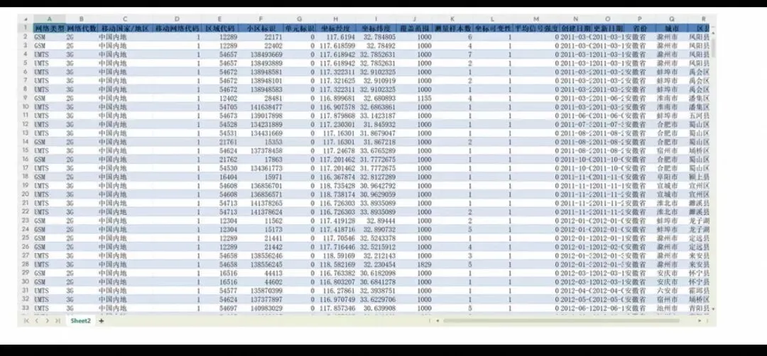 数据名称:中国省市县手机基站数据