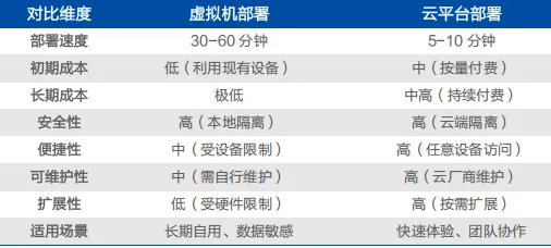 虚拟机部署在本地设备上,一次性投入硬件成本后,后续使用无额外费用。如果用户已有性能充足的电脑,虚拟机部署的边际成本几乎为零。