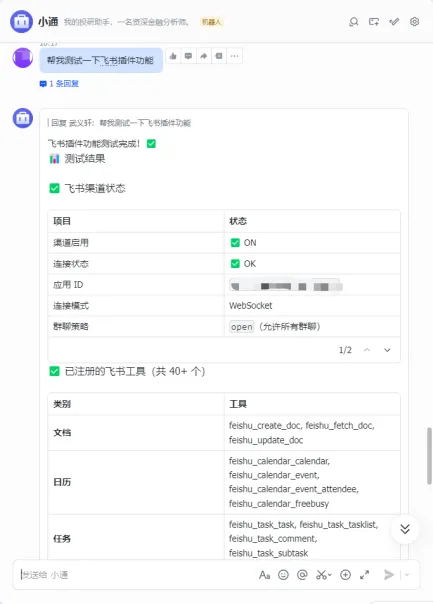 第二步,安装插件并配置,在飞书官方插件使用指南中给出了官方安装命令:npx -y https://sf3-cn.feishucdn.com/obj/open-platformopendoc/879b06f872058309ef70f49bcd38a71f_Pr8pNIJ9J9.tgz install填入 App ID 和 App Secret,配置事件订阅和卡片回调(长连接方式)。