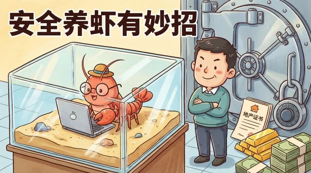 "沙盒战略"——把小龙虾圈在一个隔离环境里,银行账号、信用卡密码等关键信息都在沙盒之外,让它的"手"永远伸不出来。