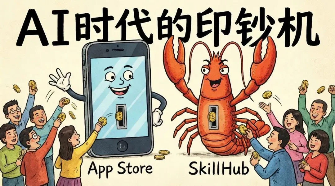 "就像当年iPhone横空出世,你买的是那块玻璃屏,但真正让你欲罢不能的是AppStore。"快思慢想研究院院长田丰对《经济学人》说,"小龙虾就是AI时代的iPhone,而SkillHub就是那个让你沉溺的App Store。"