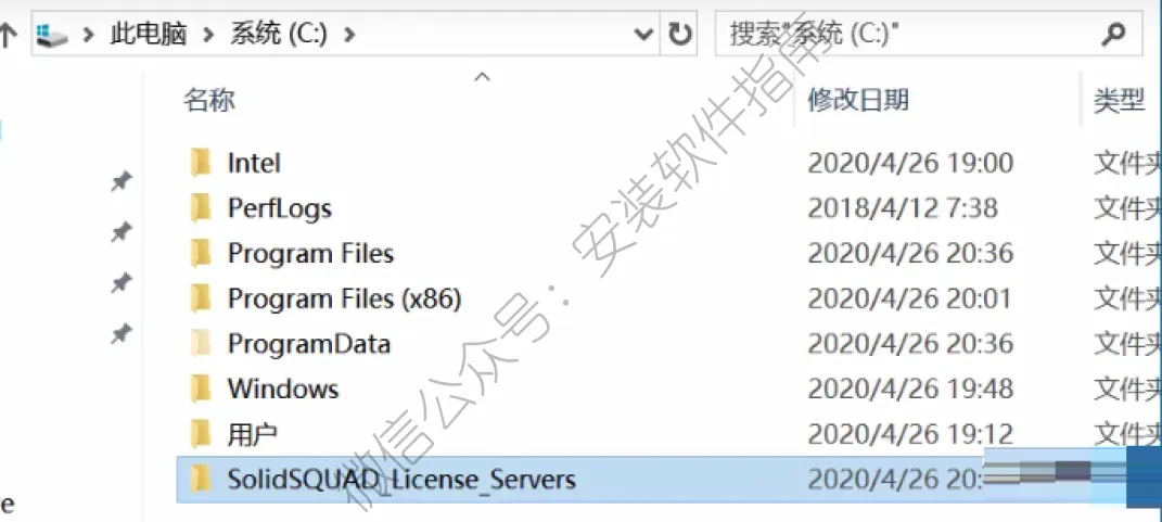 2.打开_SolidSQUAD_文件夹,将SSQ_UniversalLicenseServer_Core复制到系统盘根目录下,