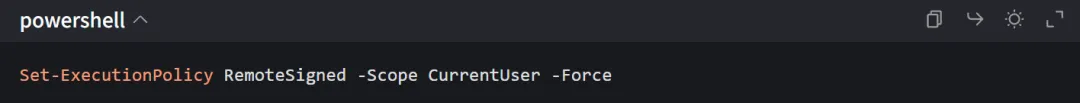 打开管理员 PowerShell(Win+X → Windows 终端 (管理员)) 先解锁脚本权限(仅首次需要): Set-ExecutionPolicy RemoteSigned -Scope CurrentUser -Force