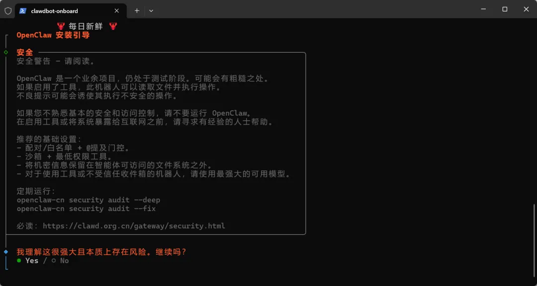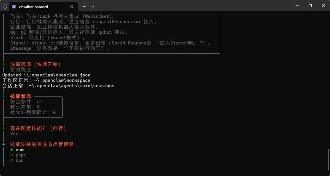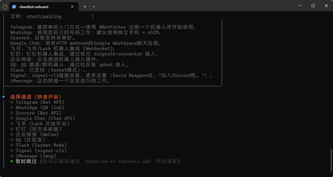 终端运行: openclaw onboard