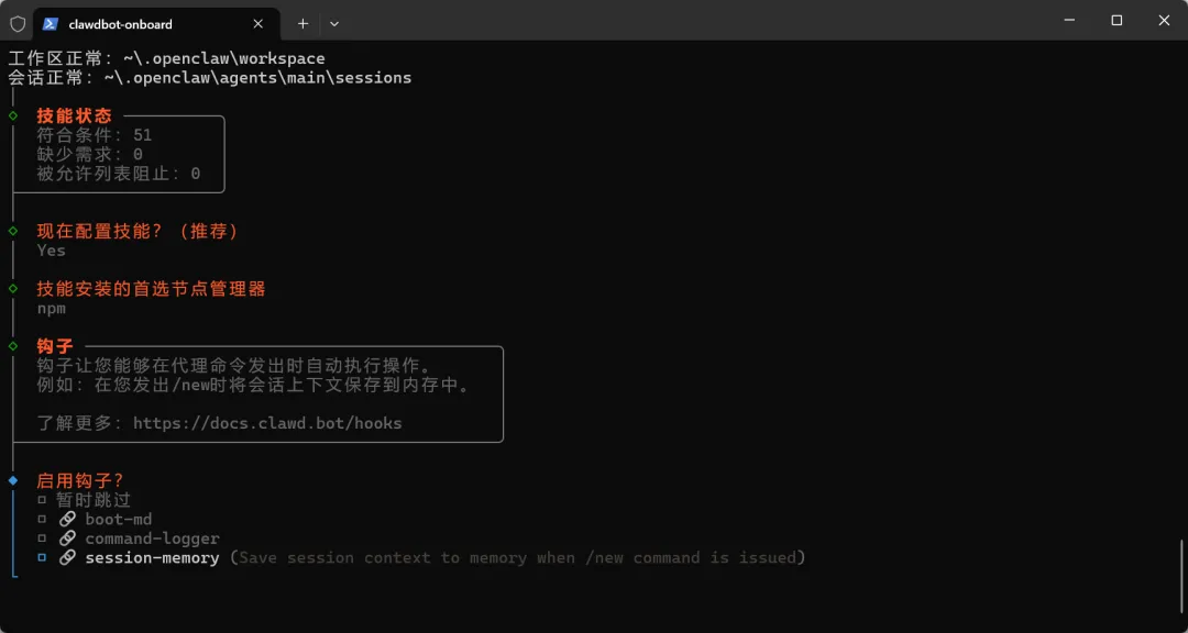 在管理员 PowerShell 中,运行配置向导: openclaw onboard