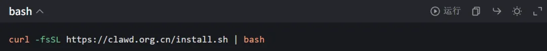 打开终端,复制国内镜像命令,粘贴回车: curl -fsSL https://clawd.org.cn/install.sh | bash