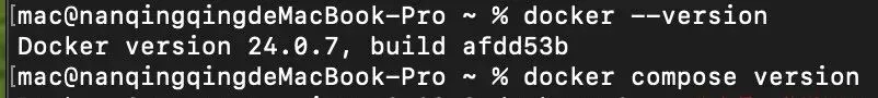 安装git :访问 git 官网下载页面:https://git-scm.com/download/mac,下载适用于macOS的安装包(.dmg 文件)。 安装docker :注意 macOS 版本对应的docker,否则版本太低后续的有些操作会失败。