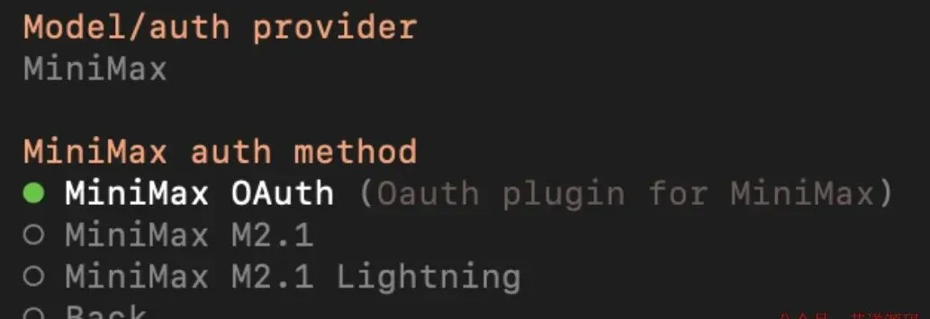 大模型的配置可以按照需求实际来选择。这里我选择 MiniMax ,如果是首次使用可以获得免费的 token 额度。