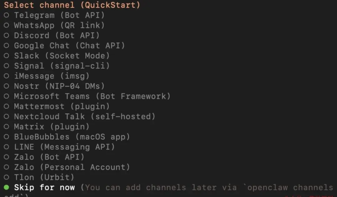 最后需要你选择一个聊天工具,因为我们例子使用的是飞书,所以直接跳过。