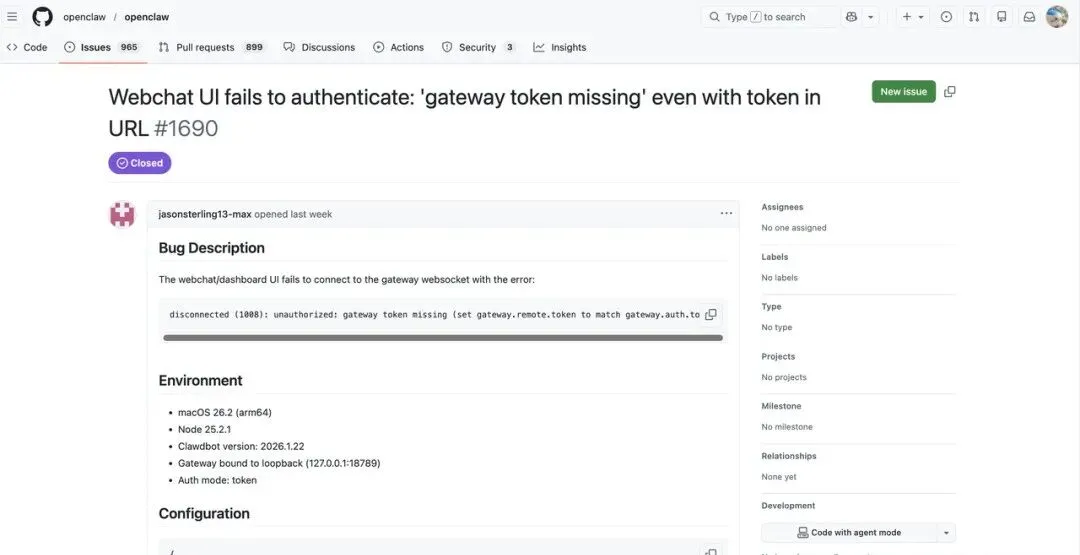 disconnected (1008): unauthorized: gateway token missing (set gateway.remote.token to match gateway.auth.token)这里我看了一下 Issue ,需要在配置中同步 token 与在 UI 界面: