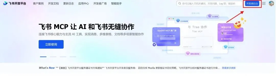 首先,进入 开发者后台 ,点击创建一个飞书企业自建应用