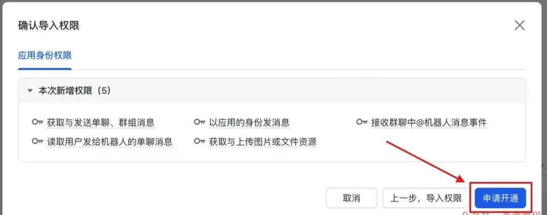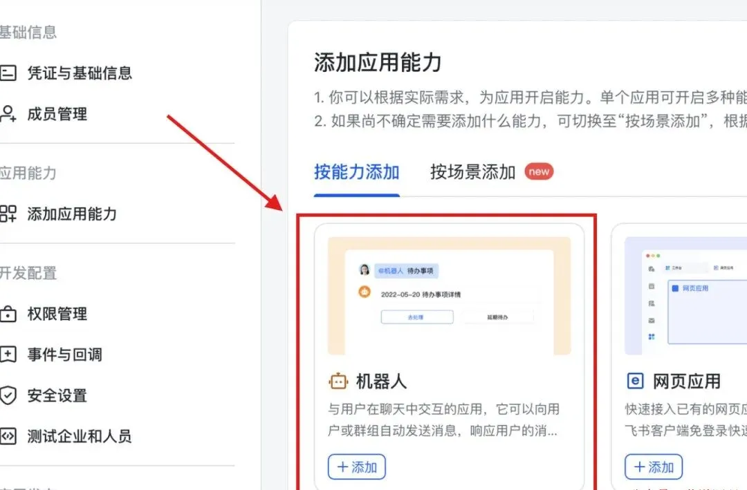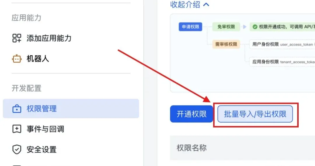 然后,选择 添加机器人 ,在 权限管理 中选择 批量导入/导出权限