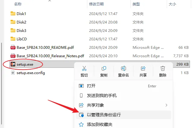 3.打开【Setup】文件夹,右键以管理员身份运行Setup安装程序。
