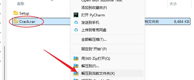 10.打开安装包解压后的【Cadence SPB 24(64bit)】文件夹,鼠标右击【Crack】压缩包,选择电脑上安装的解压软件,点击【解压到当前文件夹】。