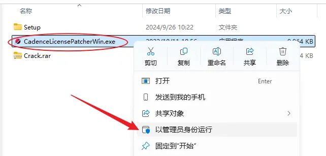 11.鼠标右击解压出来的【CadenceLicensePatherWin】选择【以管理员身份运行】。